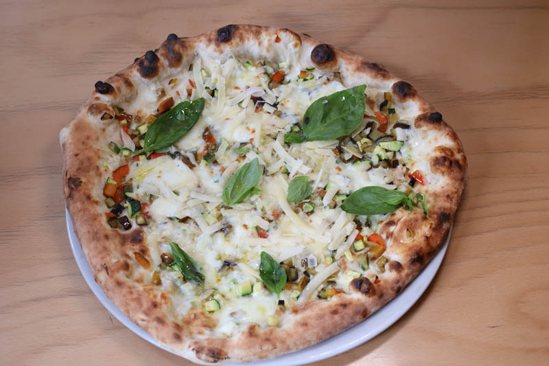 smoked mozzarella cheese, fried vegetables (eggplants, zucchini and capsicum) grana padanocheese shavings,