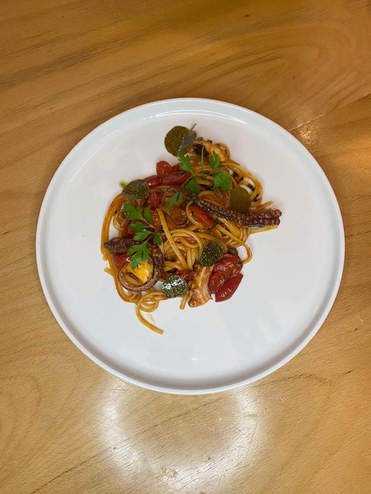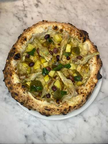 artichoke cream, potatoes, crispy artichokes, taggiasche olives (italian small black olives), capers, basil and EVO oil